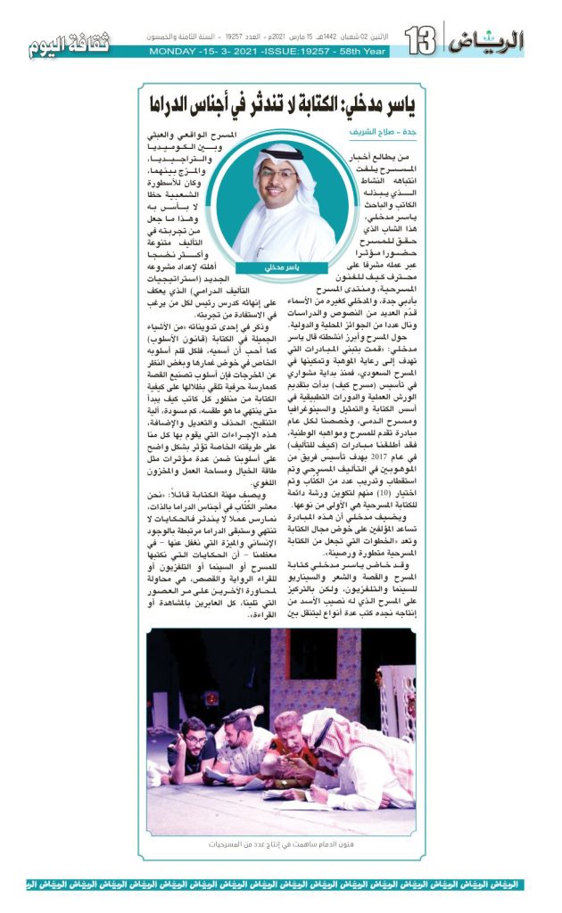 يسر النادي الأدبي الثقافي بجدة دعوتكم لحضور باكورة فعاليات “منتدى المسرح” حيث يدير اللقاء ياسر مدخلي المكان: منتدى مسرح التاريخ: 28 نوفمبر 2023